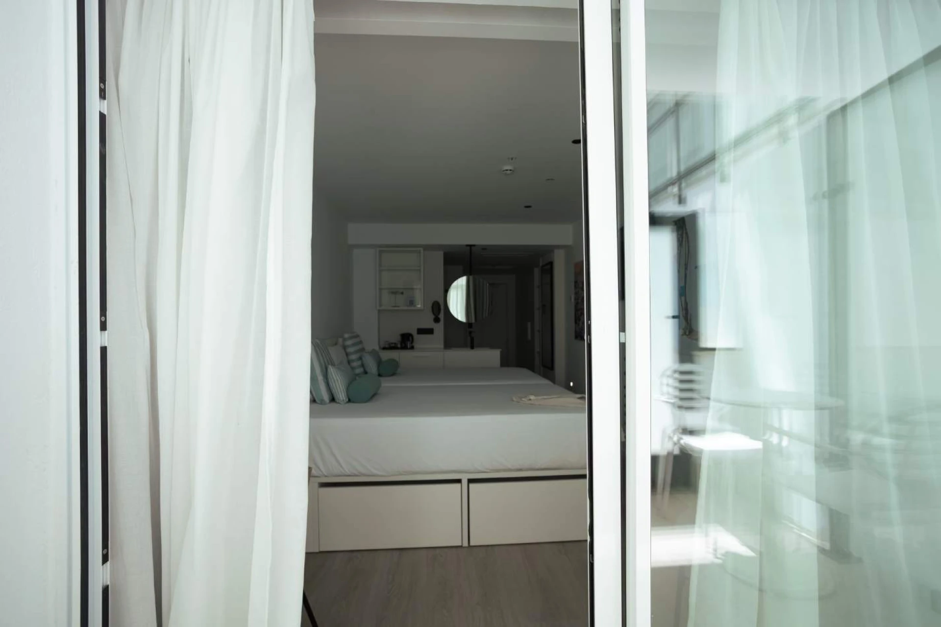 Decorada en delicados tonos blancos y azules, esta luminosa estancia transmite frescura y elegancia. Cuenta con balcón francés o terraza (Se asigna de manera aleatoria. Puedes seleccionar la habitación según tus preferencias a través de nuestro gemelo digital-mapa 3d en nuestra web), ideal para disfrutar de las vistas con una taza de café o sumergirse en una buena lectura.