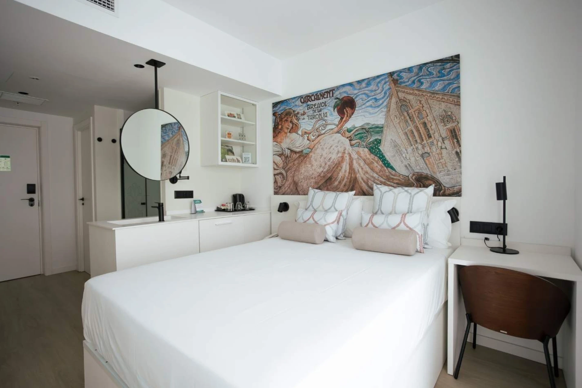 Disfruta del descanso en nuestra encantadora habitación, donde el diseño actual se entrelaza con la riqueza del patrimonio cultural de España.